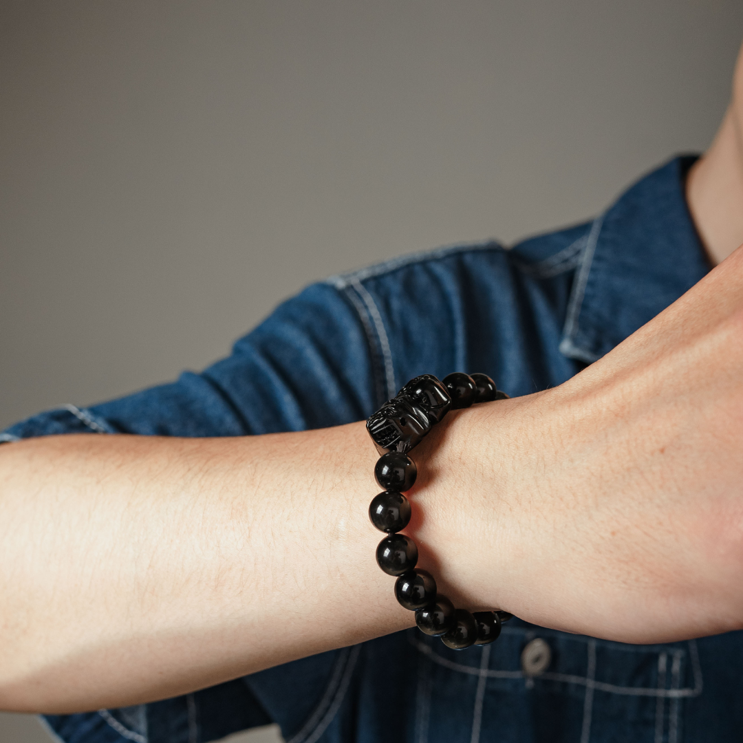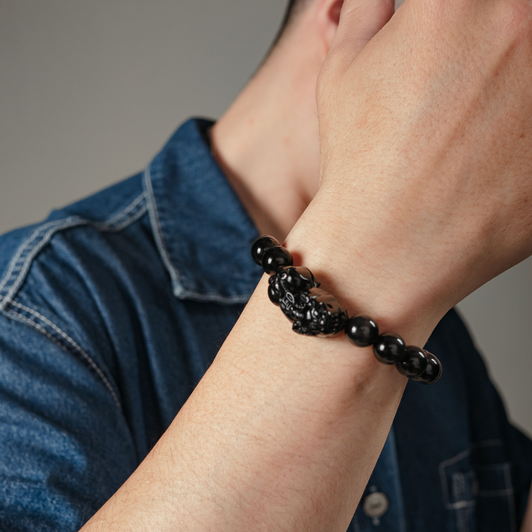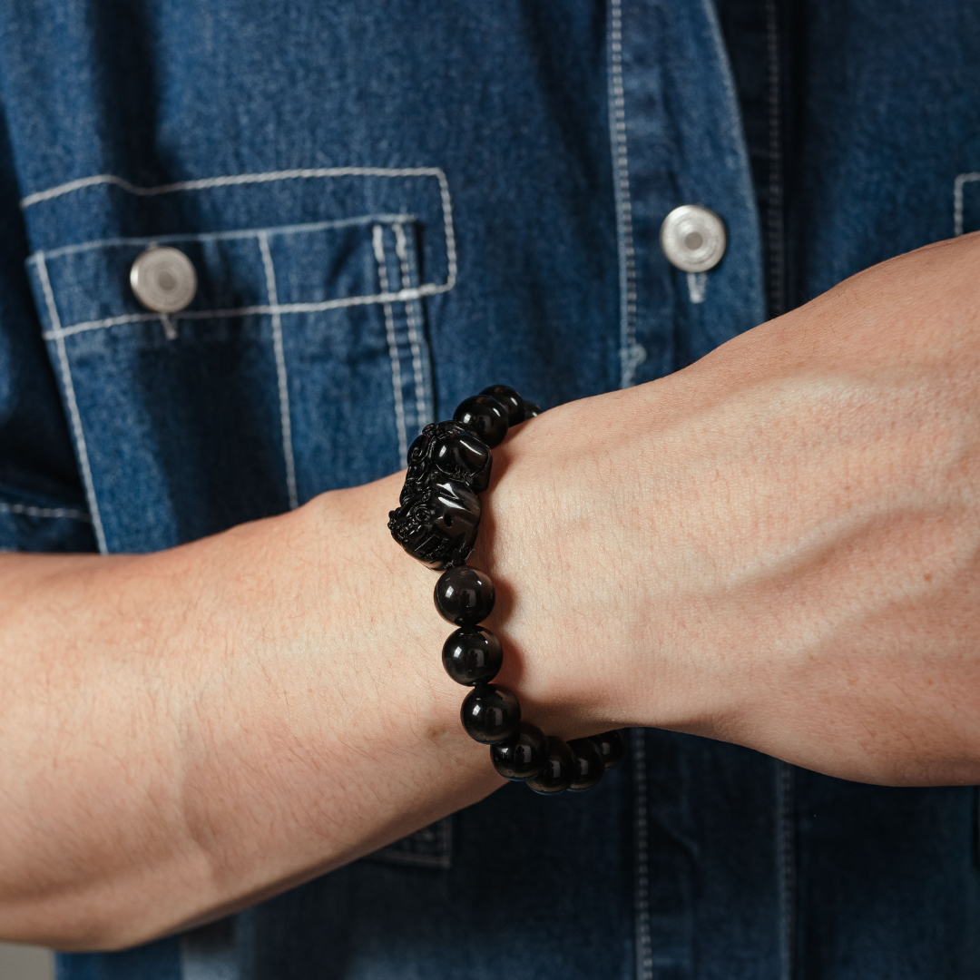 【水晶種類】黑曜石(主石黑曜石雕刻貔貅)